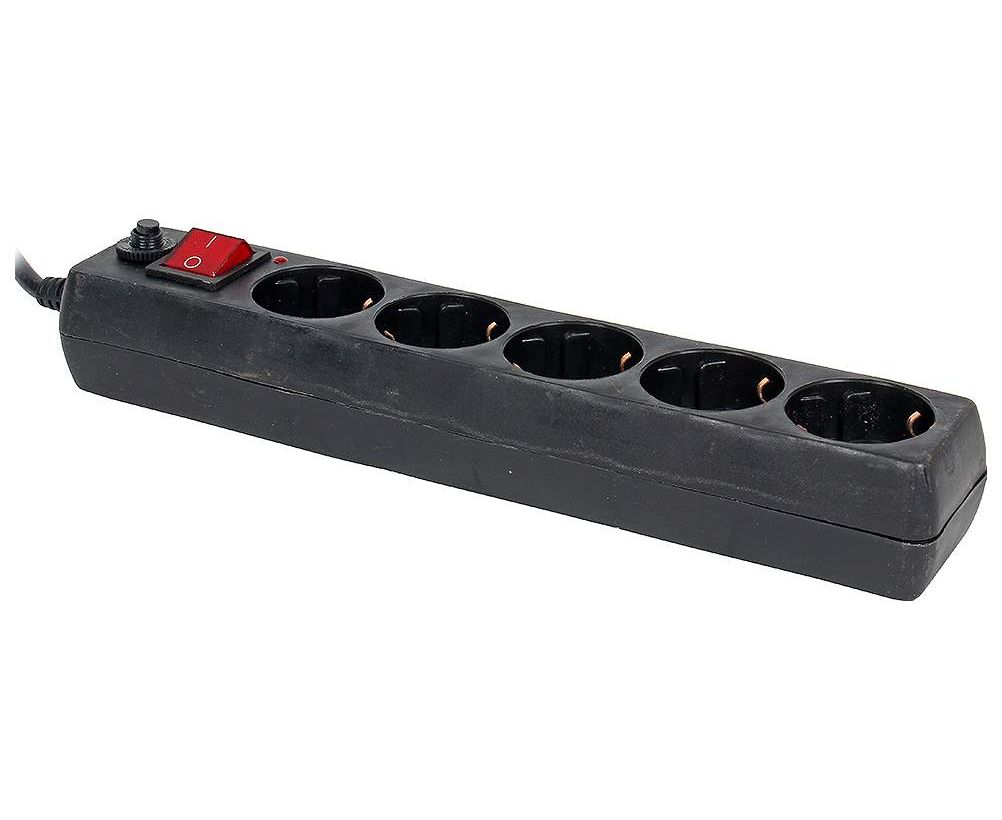 Фильтр-удлинитель сетевой 5 розеток 1,8м BURO 500SH-1.8-UPS-B, для ИБП, черный