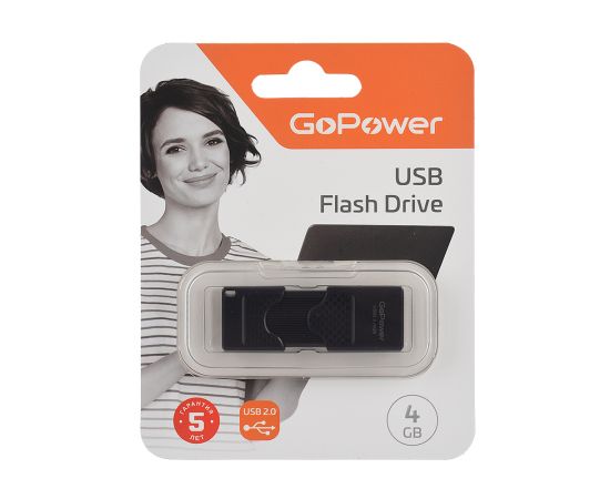 Флеш-накопитель GoPower SLIDER 4GB USB2.0 пластик черный матовый (1/50/1000)
