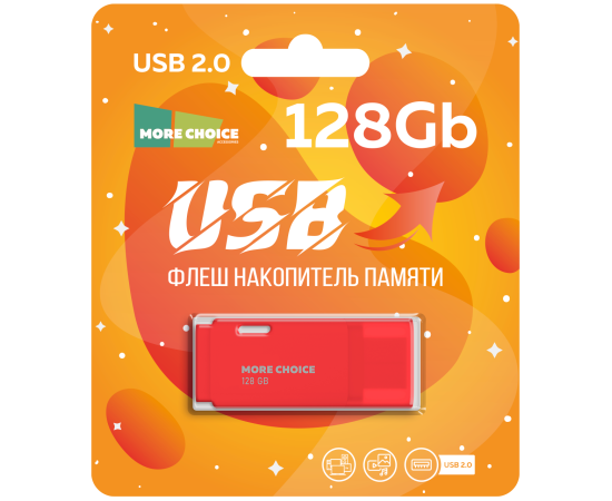 Флеш накопитель памяти USB 128GB 2.0 More Choice MF128 (Red)