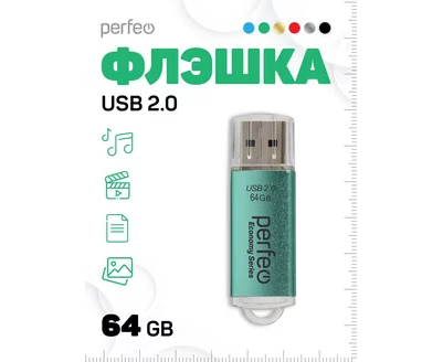 Флешка Perfeo 64GB E03 Зеленая economy series