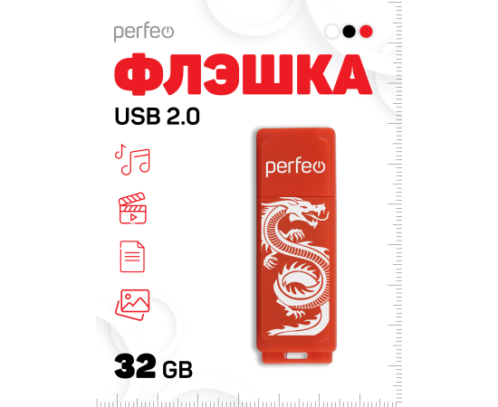 Флешка Perfeo USB 32GB C04 / Dragon Красная, (Арт. PF-C04RD032)
