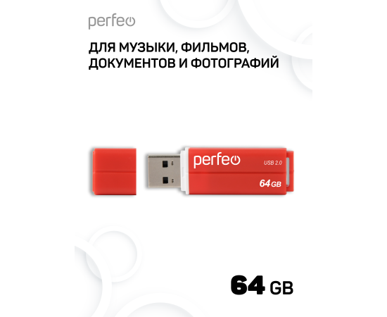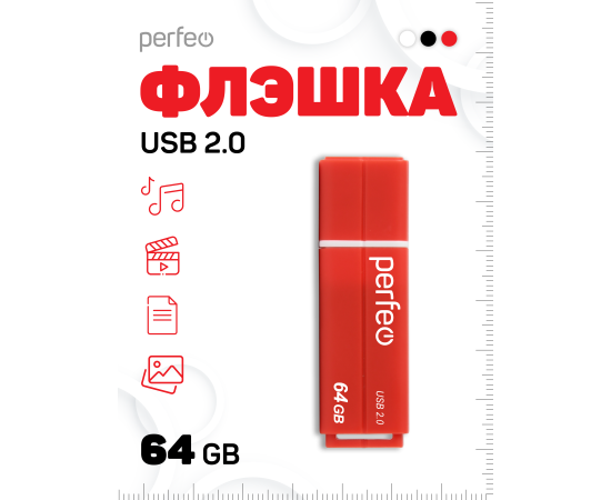 Флешка Perfeo USB 64GB C01G2 / Красная, (Арт. PF-C01G2R064)