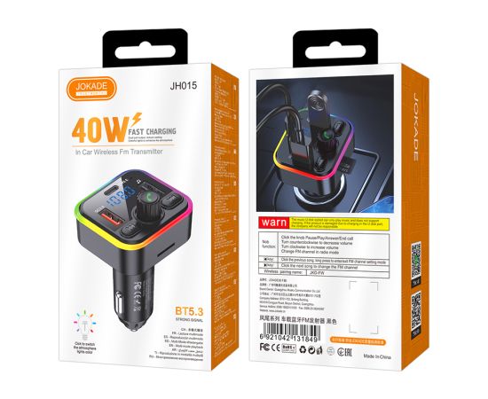FM-Модулятор PD20W+QC3.0 JOKADE JH015 black