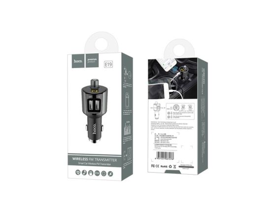 FM-трансмиттер+АЗУ 2USB 2.4A Bluetooth 4.2 Hoco E19 (Metal grey)