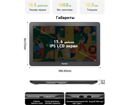 Графический планшет-монитор PARBLO Coast16 Pro Gen 2 A4 15.6" 1920x1080 черный