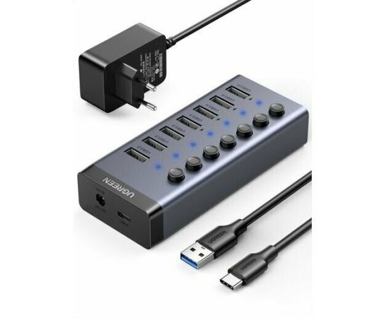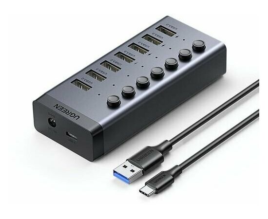 Хаб UGREEN CM481 (90307) USB-C to 7-Port USB-A 3.0 Hub DC 12V EU черный