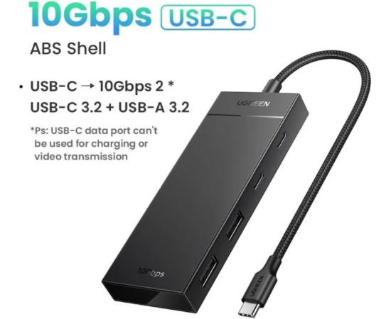 Хаб UGREEN CM806 (35583) USB-C To 2xUSB-A + 2xUSB-C HUB without PD. Цвет: черный