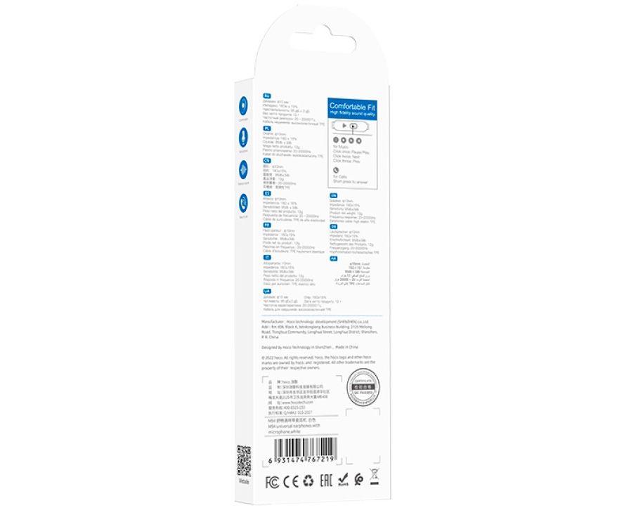 Hoco M94, проводные наушники с микрофоном, 1.2м, аудио коннектор 3.5мм, проводное управление1. Материал: ABS + TPE.2. Спикер: 10мм.3. Аудио разъем: Ø3.5мм.4. Длина кабеля: 1.2м. Вес: 12г.5. Микрофон: поддерживается.6. Проводное управление: управление одной кнопкой.