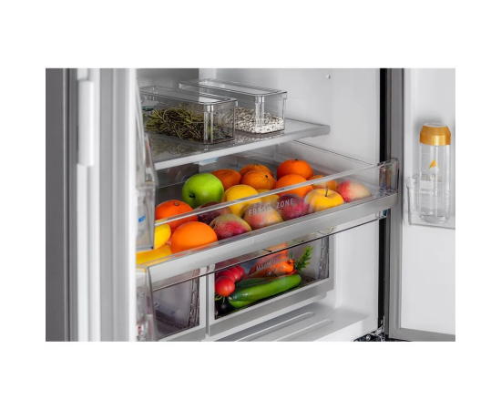 Особенности холодильника: Full No Frost, Антибактериальное покрытие камеры, Дисплей, Зона свежести, Светодиодная подсветка, Система контроля влажности, Скрытые ручки, Суперзаморозка, Суперохлаждение