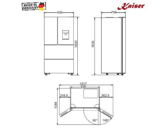 Габариты (ШxГxВ), мм. 836/706/1830