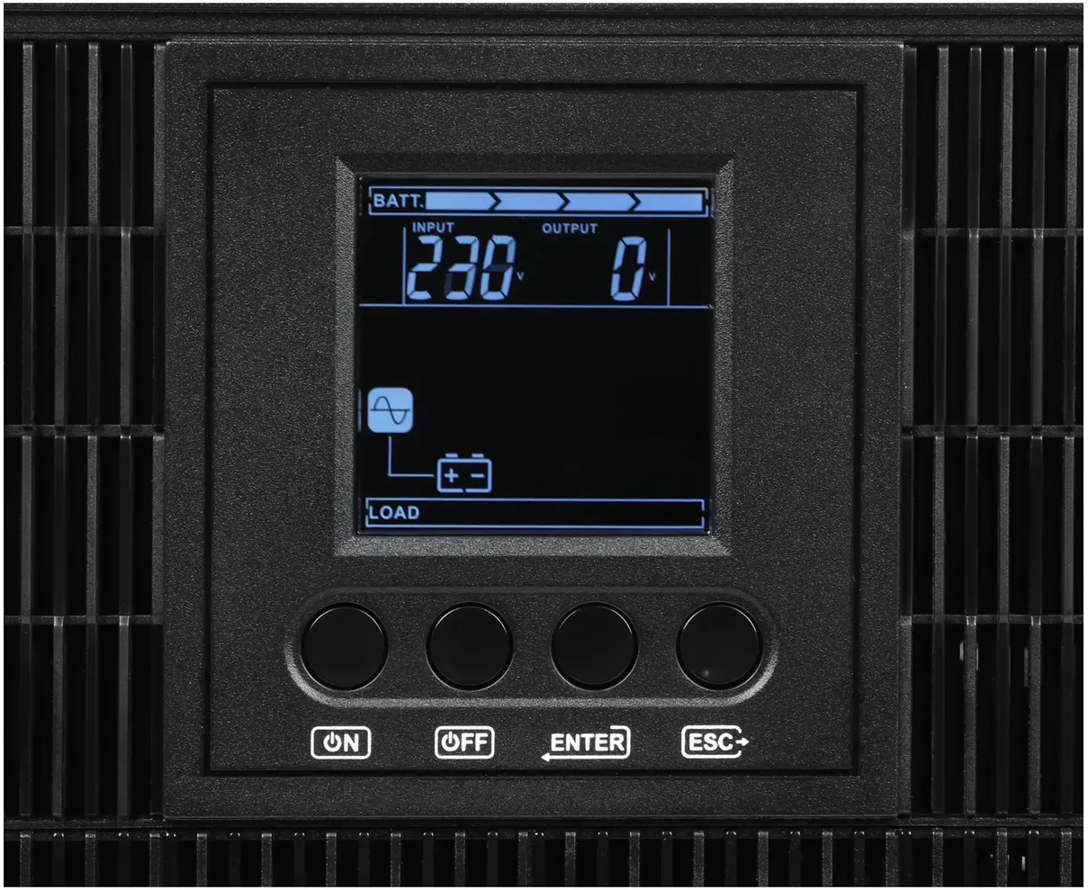 при нагрузке 105%~110% переключится в режим байпаса спустя 10 мин, при нагрузке 110%~130% переключится в режим байпаса спустя 1 мин, при нагрузке >130% переключится в режим байпаса спустя 3 с