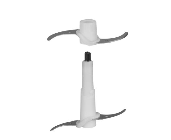 В комплекте: чоппер, двойной нож, чаша, крышка, силиконовое основание, защитный кожух (4 шт.), руководство по эксплуатации