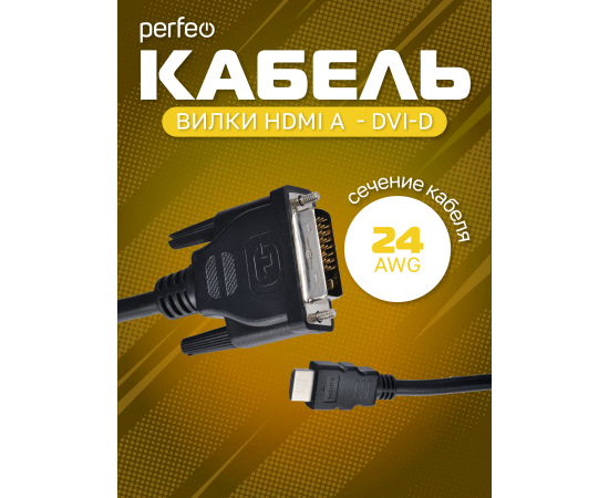 Кабель PERFEO HDMI A вилка - DVI-D вилка, длина 2 м. (D8001)