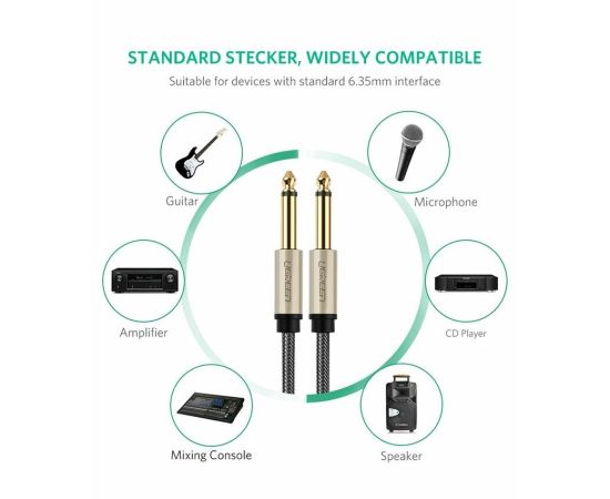 Кабель UGREEN AV128 (10639) 6.5mm Male to Male Stereo Auxiliary Aux Audio Cable 3m Gray