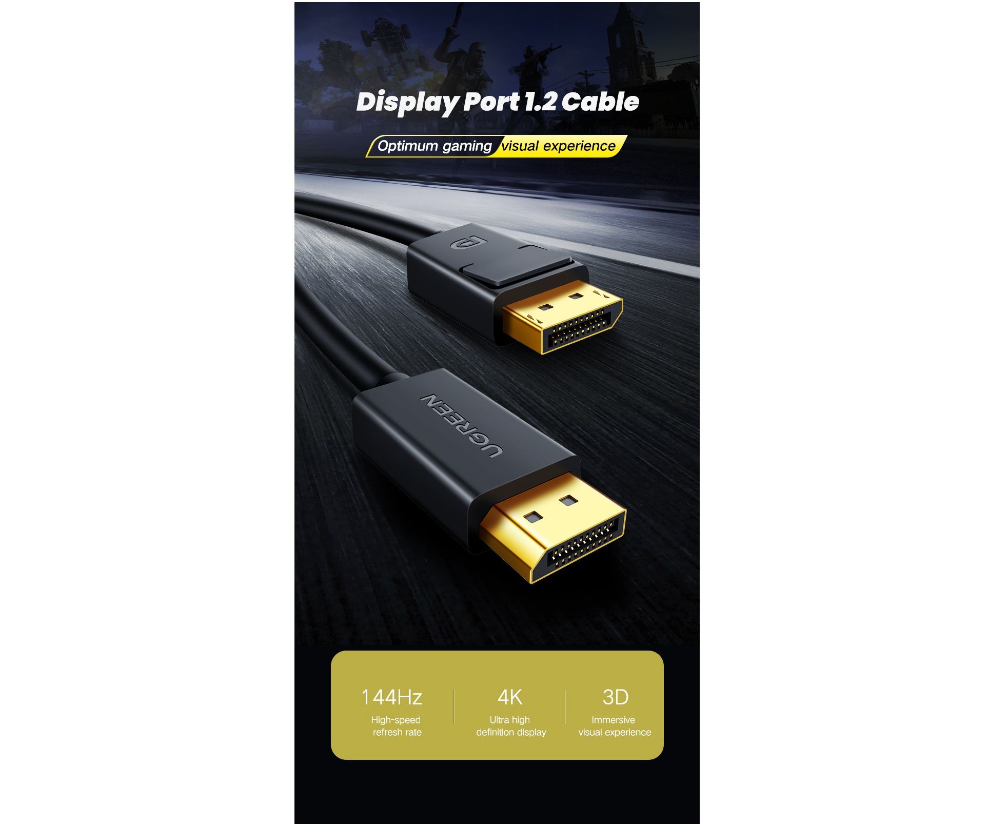 Кабель UGREEN DP102 10244 DP 1.2 Male to Male Cable 1m Black