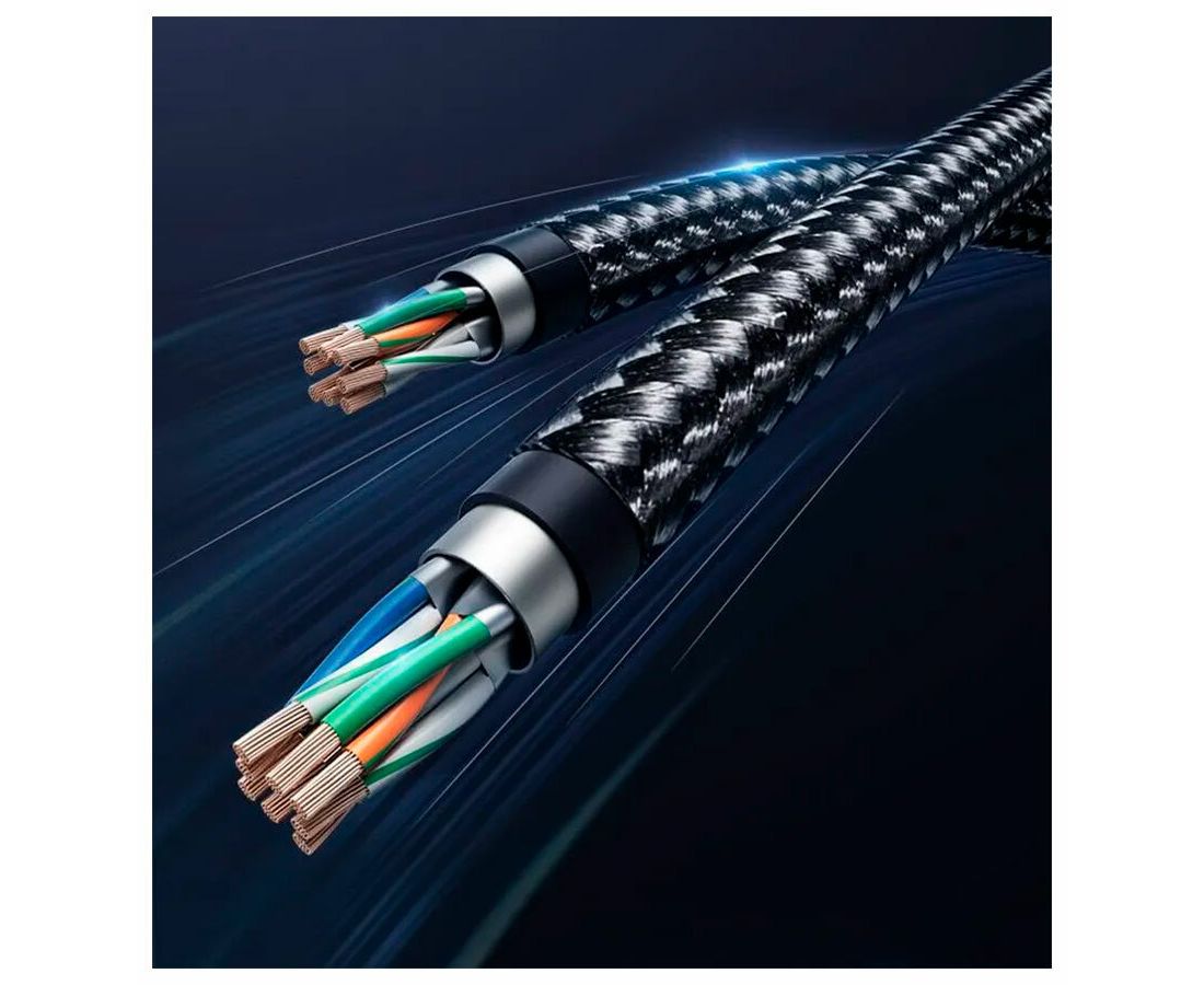 Кабель UGREEN NW153 80431 Cat8 CLASSⅠF/FTP Round Ethernet Cable With Braid 2m Black