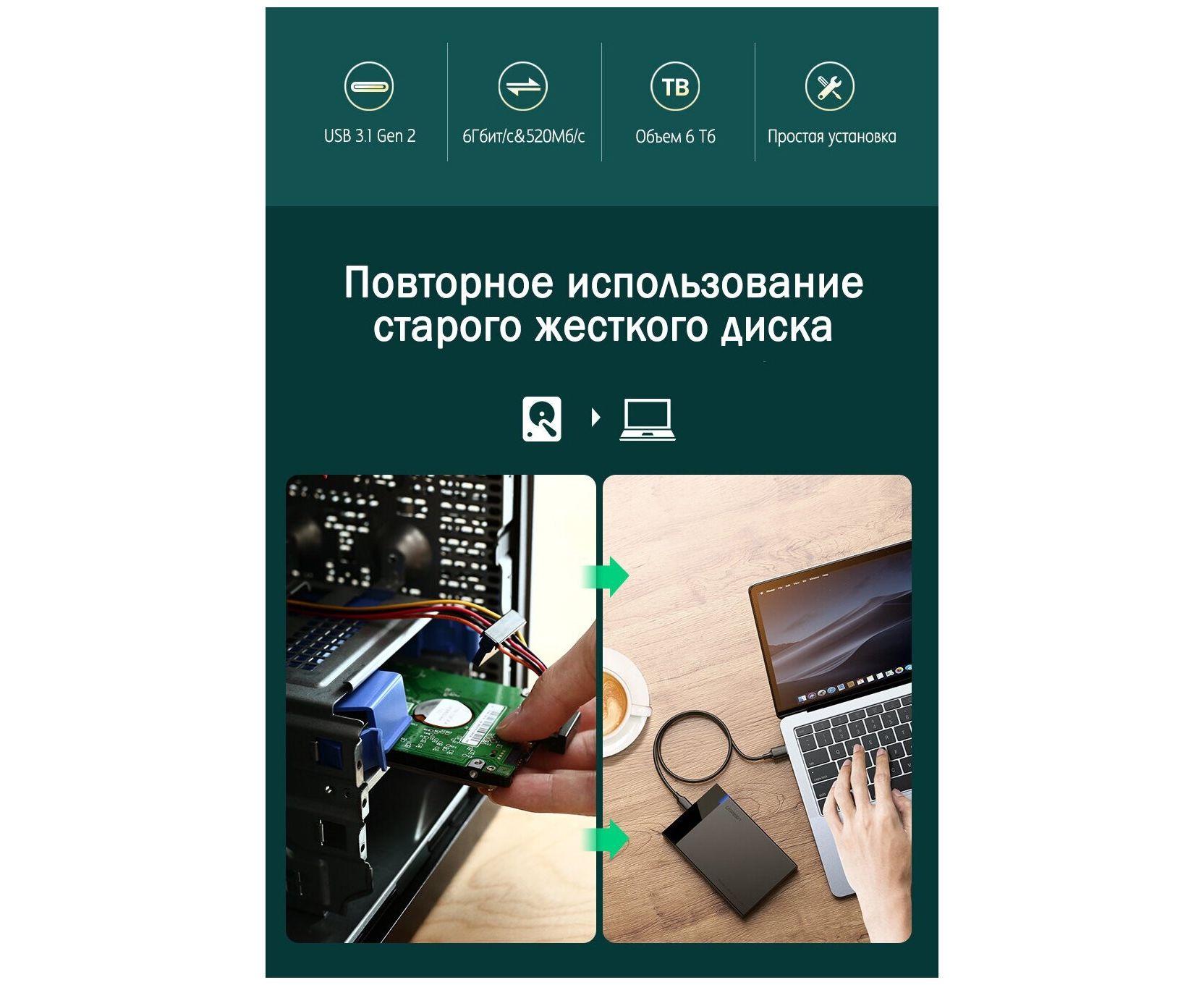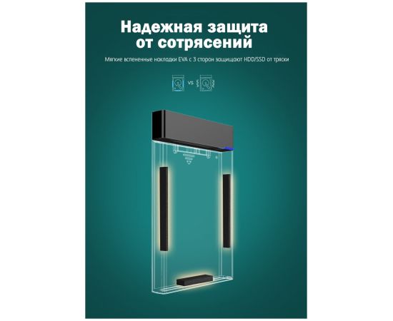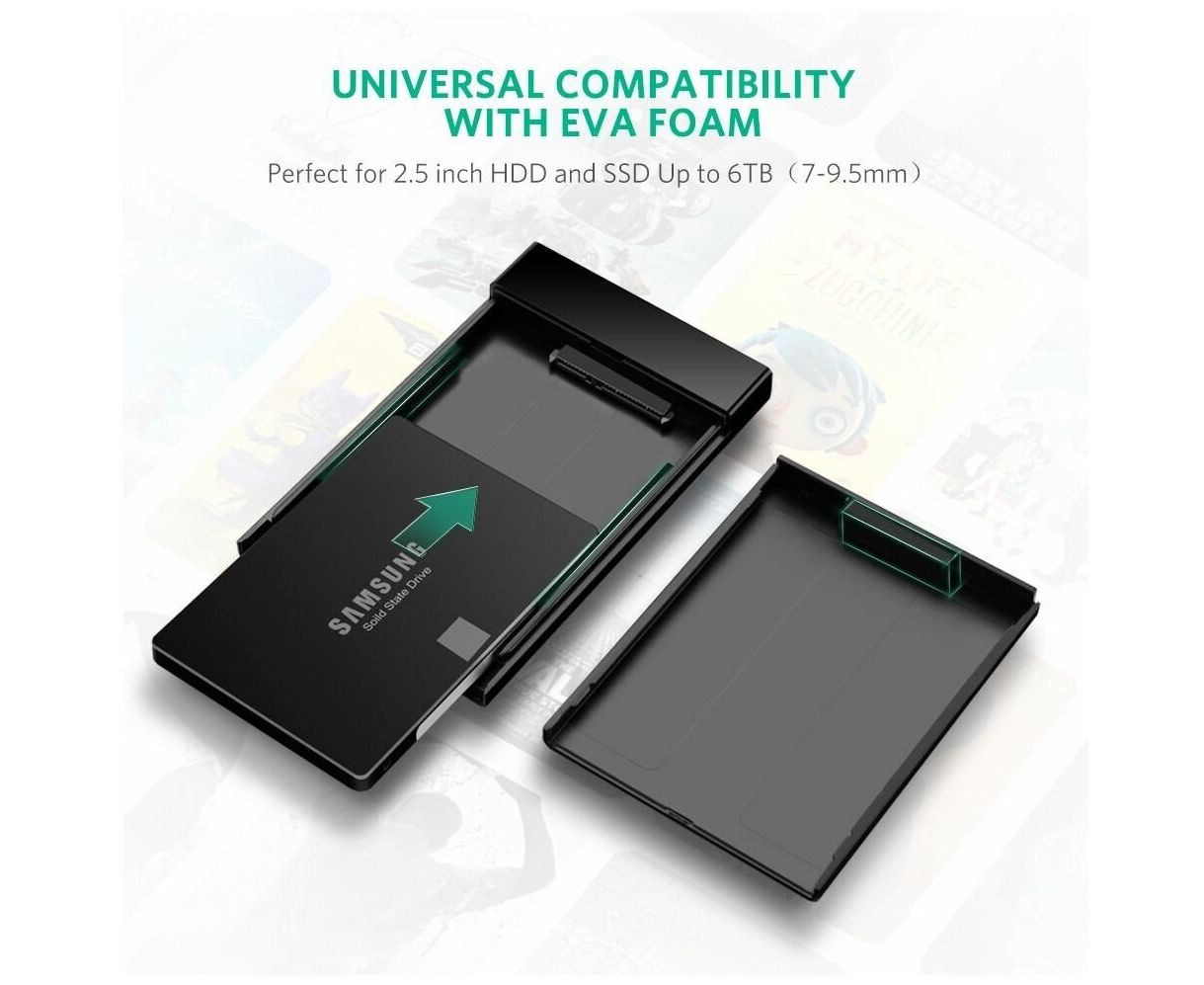 Внешний корпус для HDD UGREEN US221 30848 2.5 Inch Hard Drive Box with Micro-B to USB-A 3.0 Cable Black