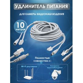 Удлинитель питания DC 2.1x5.5 с патч-кордом, 10 метров, серый