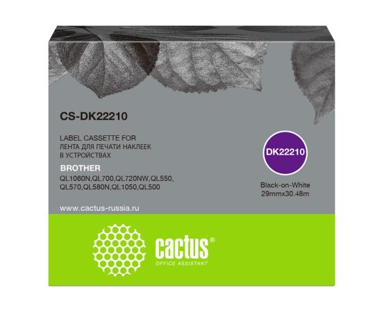 Картридж Cactus DK-22210 (CS-DK22210) черный ленточный для Brother P-touch QL-500, QL-550, QL-700, QL-800