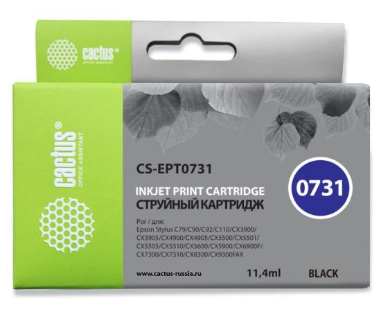 Картридж Cactus T0731 (CS-EPT0731) струйный черный (11.4мл) для Epson Stylus С79/C110/СХ3900/CX4900/CX5900/CX7300/CX8300/CX9300