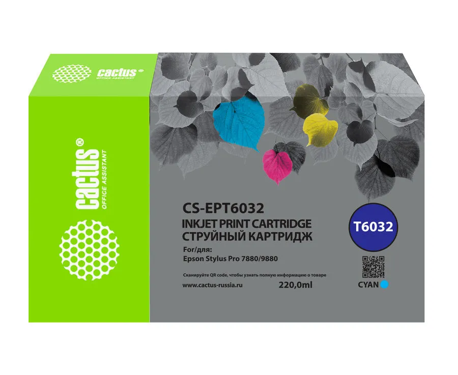 Картридж Cactus T6032 (CS-EPT6032) струйный голуб.пигм. (220мл) для Epson Stylus PRO 7880/9880