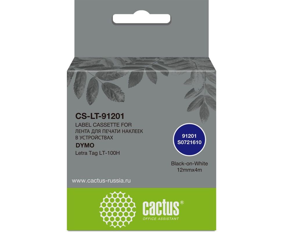 Картридж ленточный Cactus CS-LT-91201 91201 для Dymo Letra Tag LT-100H