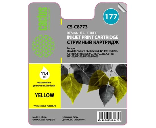 Картридж струйный Cactus CS-C8773 желтый для №177 HP PhotoSmart 3213/3313/8253/C5183/C6183/D7463 (11