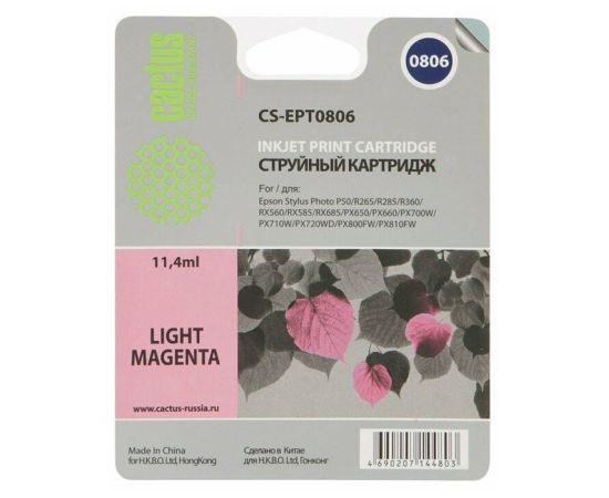 Картридж струйный Cactus CS-EPT0806 светло-пурпурный для Epson Stylus Photo P50 (11,4ml)