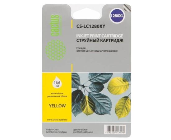 Картридж струйный Cactus CS-LC1280XY желтый для Brother MFC-J6510/6910DW (16,6ml)