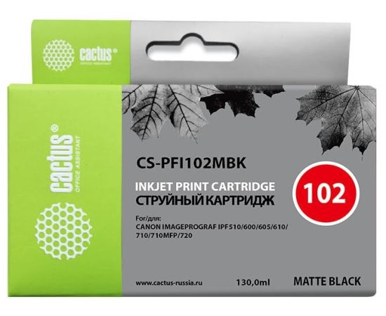 Картридж струйный Cactus CS-PFI102MBK черный матовый (130мл) для Canon iPF500/iPF600/iPF700/ MFP M40/iPF765/LP17/LP24