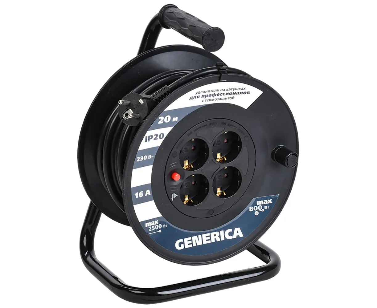 Катушка GENERICA УК20 (WKP20-16-04-20-G) с т/з 4 места 2P+PE/20м 3х1,5мм2