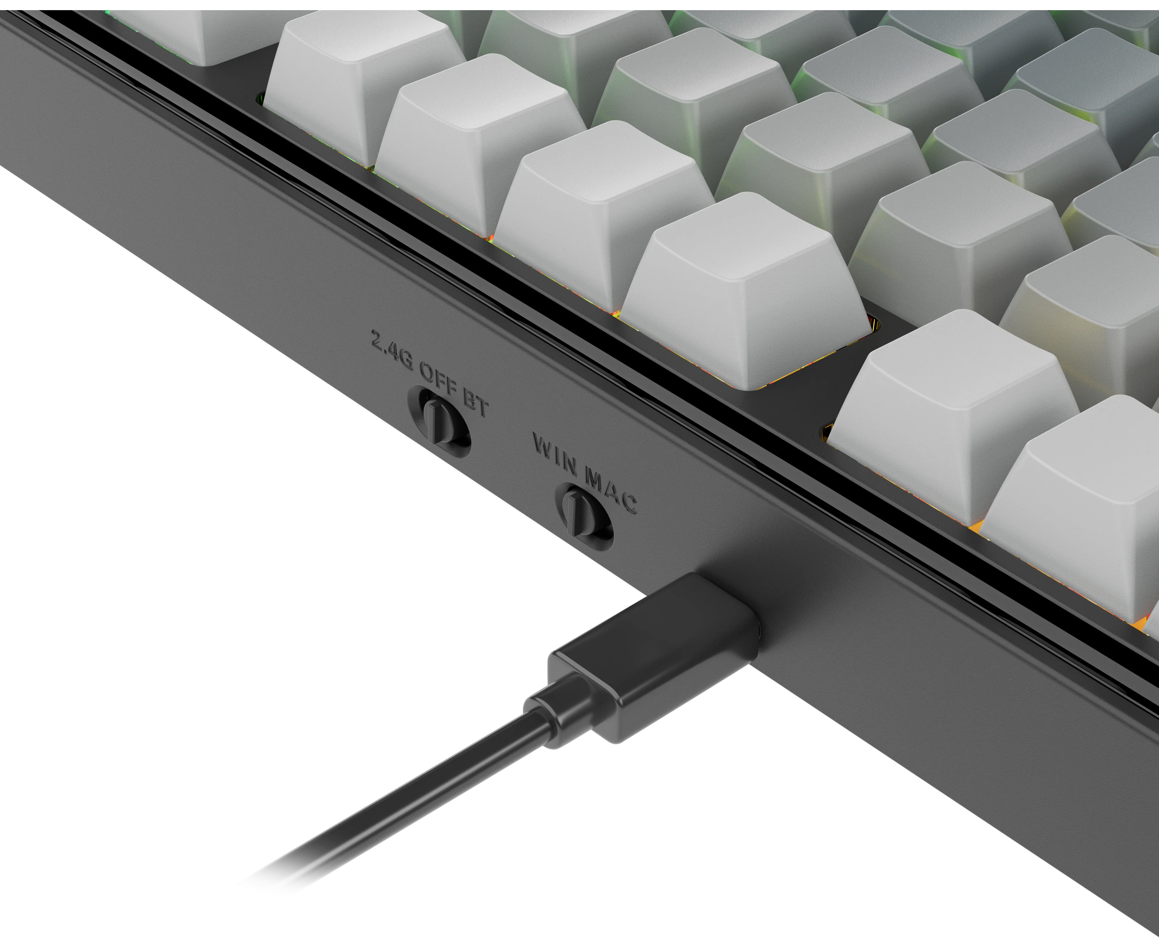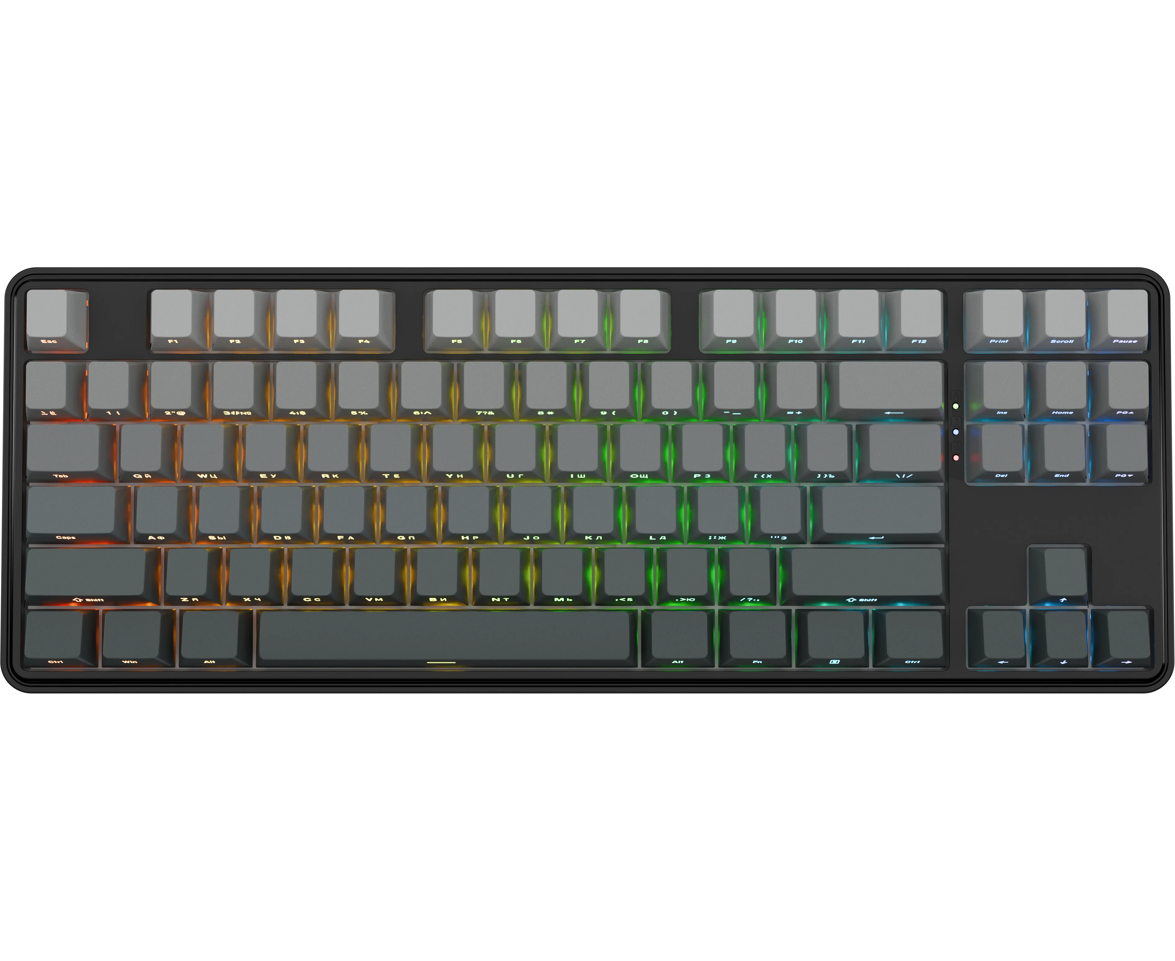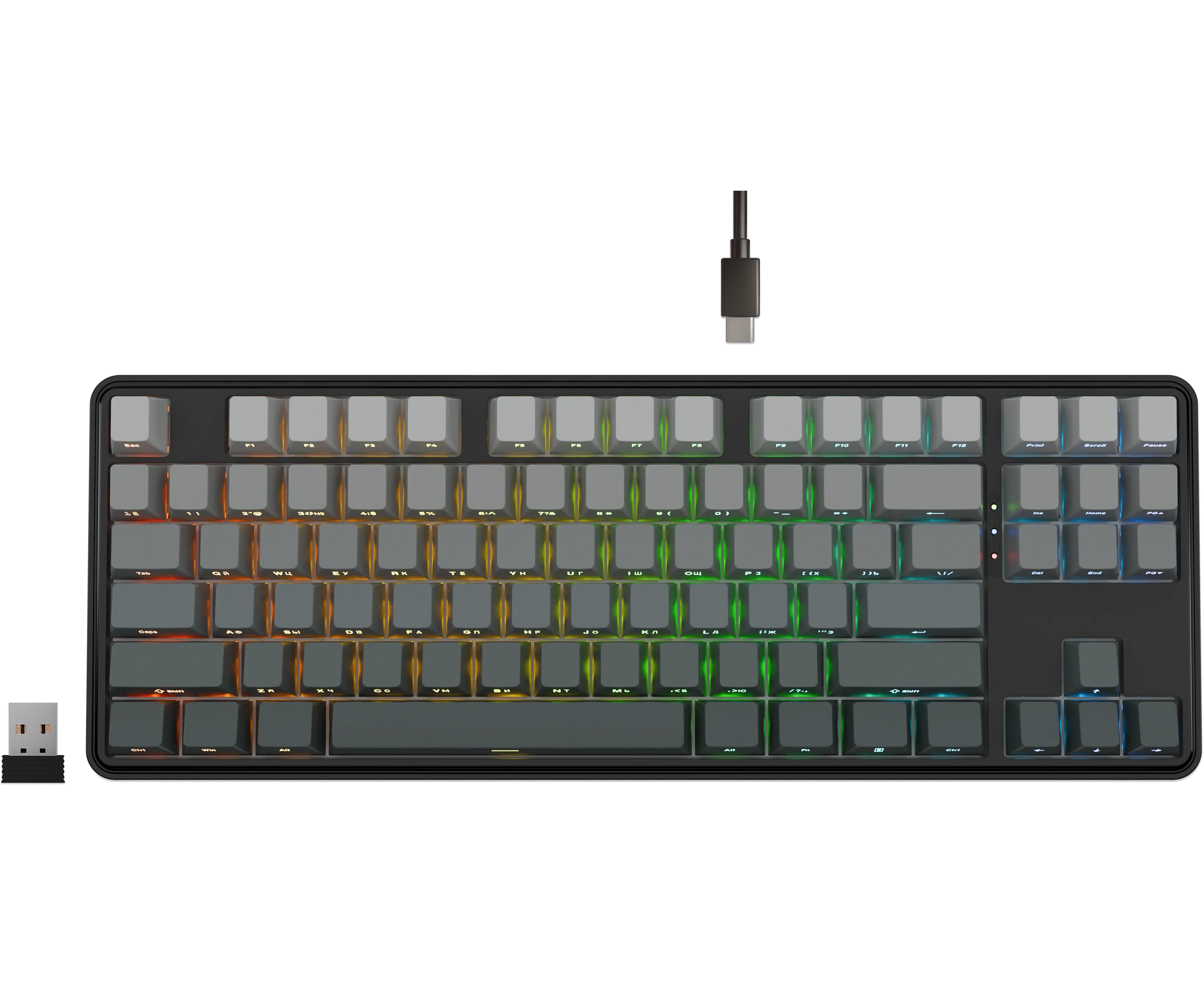 Стильная TKL-клавиатура с градиентными кейкапами, RGB-подсветкой и конструкцией Gasket-mount для плавных и комфортных нажатий. Подключайтесь как удобно — по 2.4 ГГц, Bluetooth или проводу. Меньше места, больше выразительности.