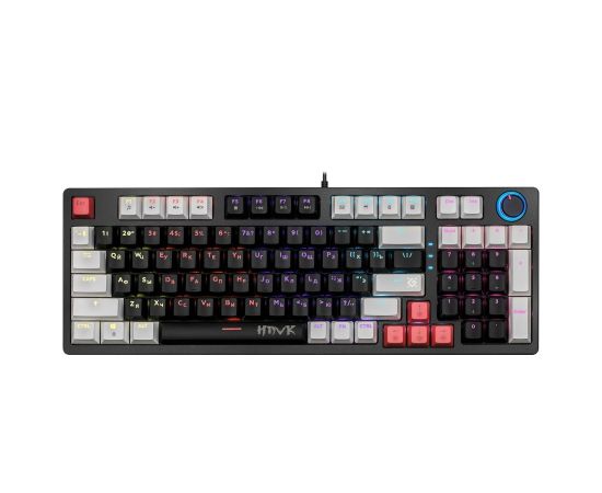 Стильная механическая клавиатура с кейкапами трех цветов и тихими коричневыми свитчами. Главные особенности модели: радужная подсветка, возможность замены свитчей, благодаря технологии Hot Swap, а также наличие кнопки-регулятора для управления громкостью и подсветкой.