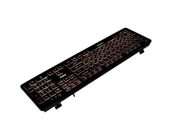 3. Подсветка клавиш - да. Янтарный цвет. Клавиши непрозрачные, символы просвечиваются изнутри. Регулируемая яркость подсветки, может быть полностью отключена
