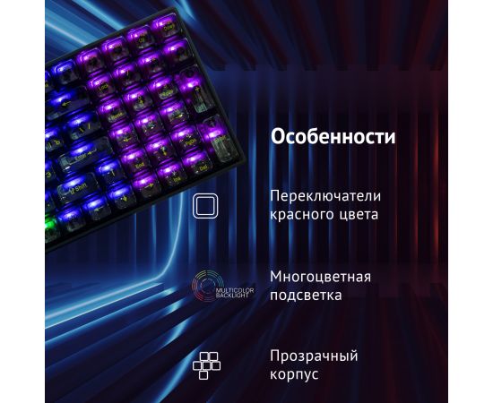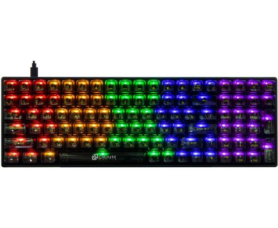 Механическая игровая клавиатура Оклик 915GK подчеркнет захватывающую атмосферу во время игры и поможет с комфортом достигать впечатляющих результатов в различных тайтлах. Модель выполнена в черном цвете и оснащена прозрачными кейкапами, сквозь которые видна многоцветная подсветка. Прозрачный корпус придает устройству неповторимый геймерский дизайн.