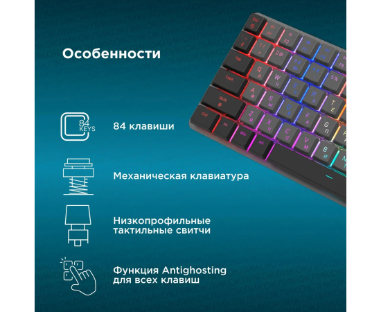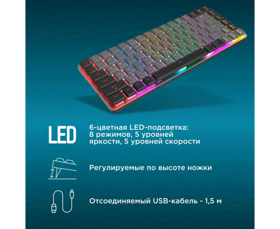 Клавиатура OKLICK K615X (1934413) механическая черный/серебристый USB Multimedia for gamer LED