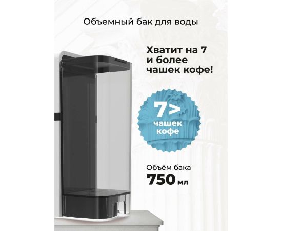 Резервуар для воды вмещает 0,85 л., съемный каплесборник — 30 мл. Идеальные пропорции для комфортного обслуживания