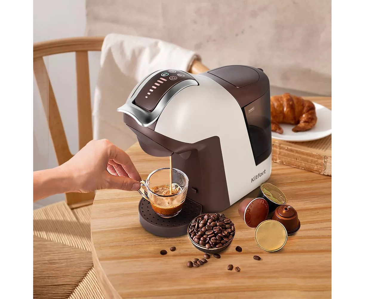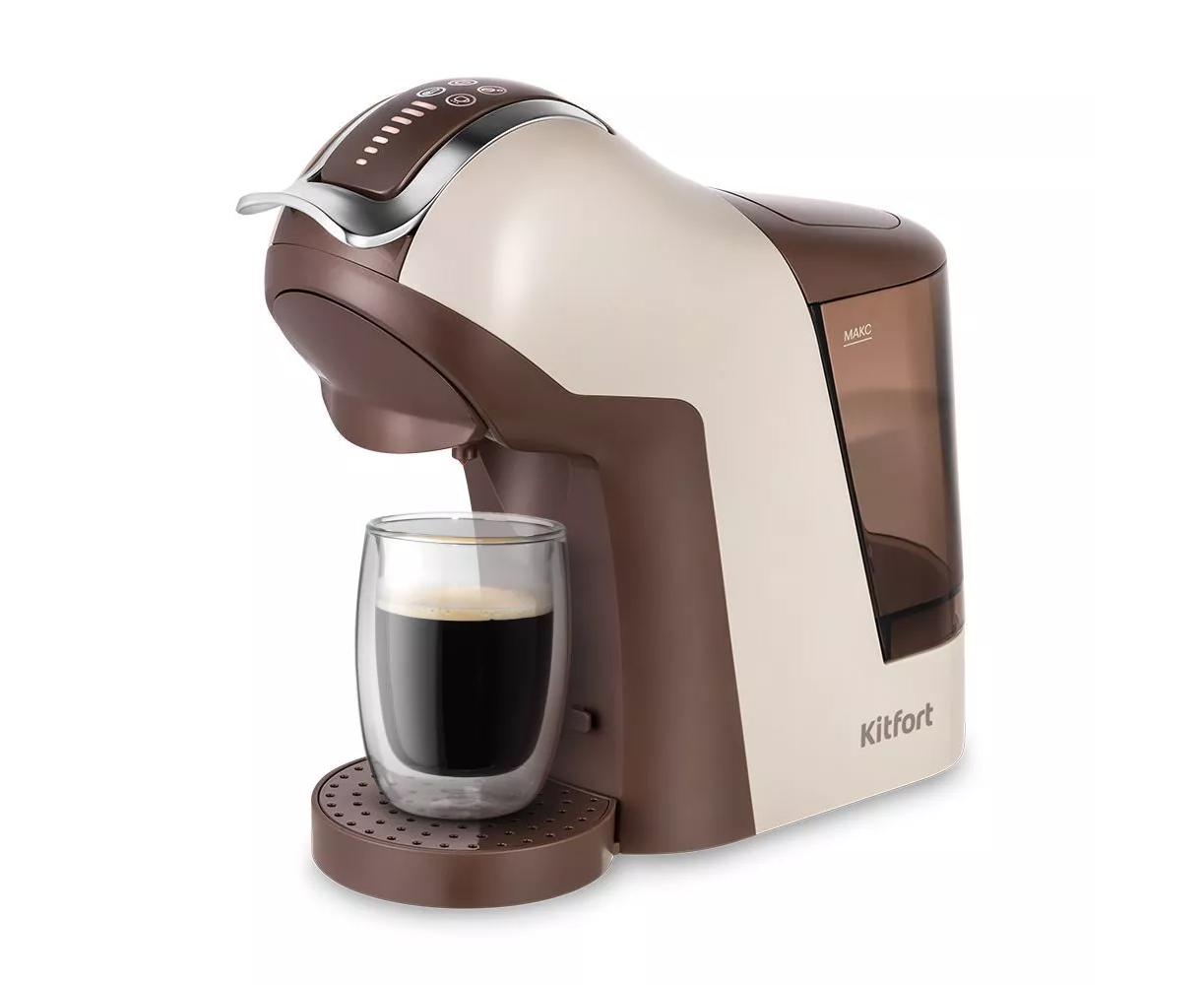 Кофемашина Kitfort КТ-7448 коричневый/бежевый