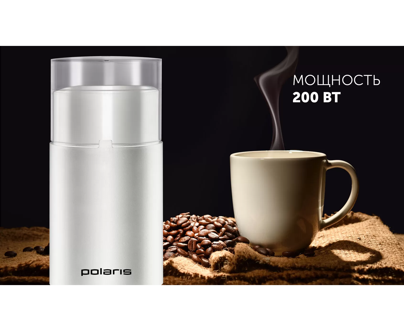 Кофемолка Polaris PCG-2015 белый 200вт, 50гр. пластик