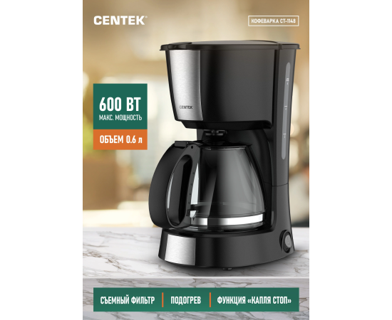 Кофеварка Centek CT-1148 Steel/Black