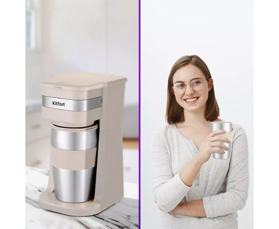 Кофеварка KitFort КТ-7317 бежевый/нерж
