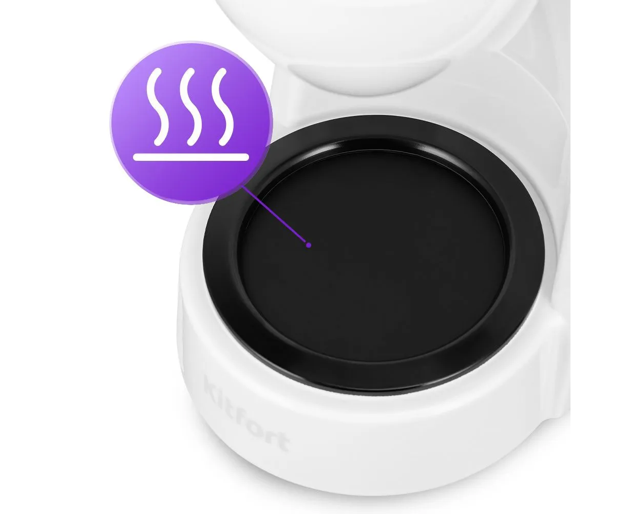 В месте установки кофейника находится платформа для подогрева. При работе кофеварки, включается нагревательный элемент, расположенный под платформой. Благодаря остаточному теплу платформа подогревает напиток в кофейнике некоторое время после выключения.