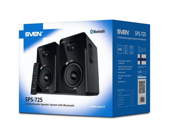 Акустическая система 2.0 SVEN SPS-725 черный (50 Вт, Bluetooth, пульт)