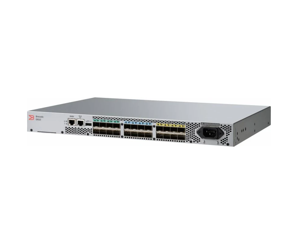 Коммутатор Brocade G610 (BR-G610-24-32G-0-CR) 24-port FC Switch, 24-port licensed, incl 24x 32Gb SWL SFP+, Enterprise SW Bundle