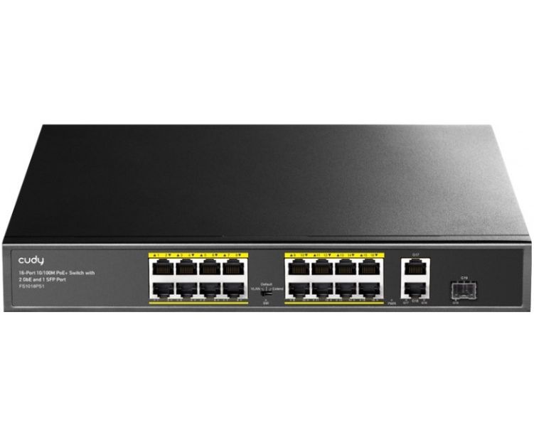 Коммутатор неуправляемый Cudy FS1018PS1 (L2) 16x100Мбит/с 2x1Гбит/с 1SFP 16PoE+ 200W