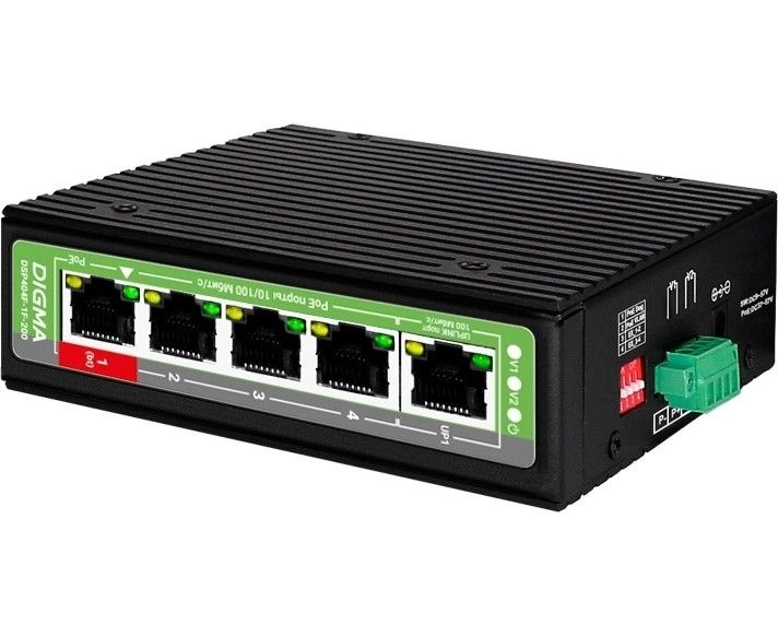 Коммутатор неуправляемый Digma DSP404F-1F-200 (L2) 5x100Мбит/с 4PoE 4PoE+ 1PoE++ 200W