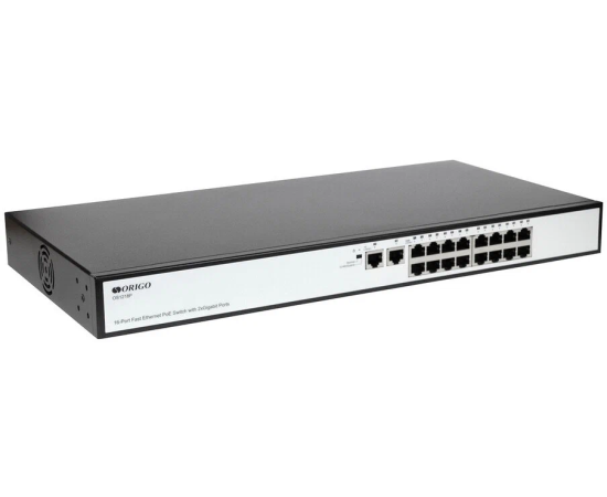 Коммутатор ORIGO (OS1218P/190W/A1A) неуправляемый PoE 16x100Base-TX PoE+, 2x1000Base-T, PoE-бюджет 190 Вт, корпус металл
