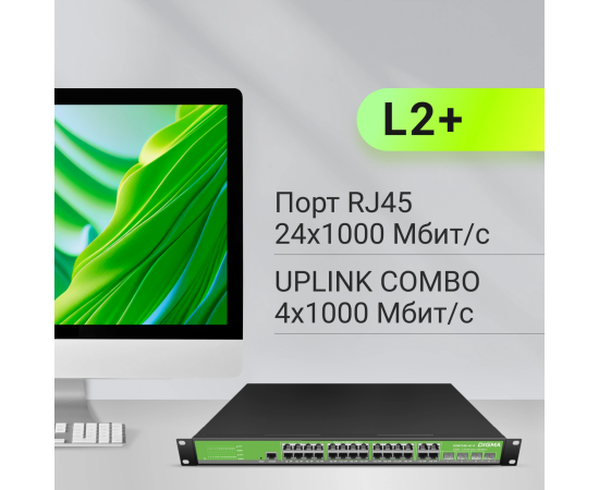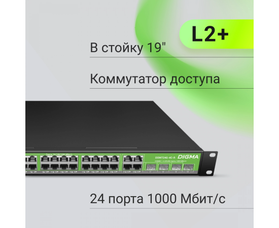 Коммутатор управляемый Digma DSW724G-4C-R (L2+) 24x1Гбит/с 4xКомбо(1000BASE-T/SFP)