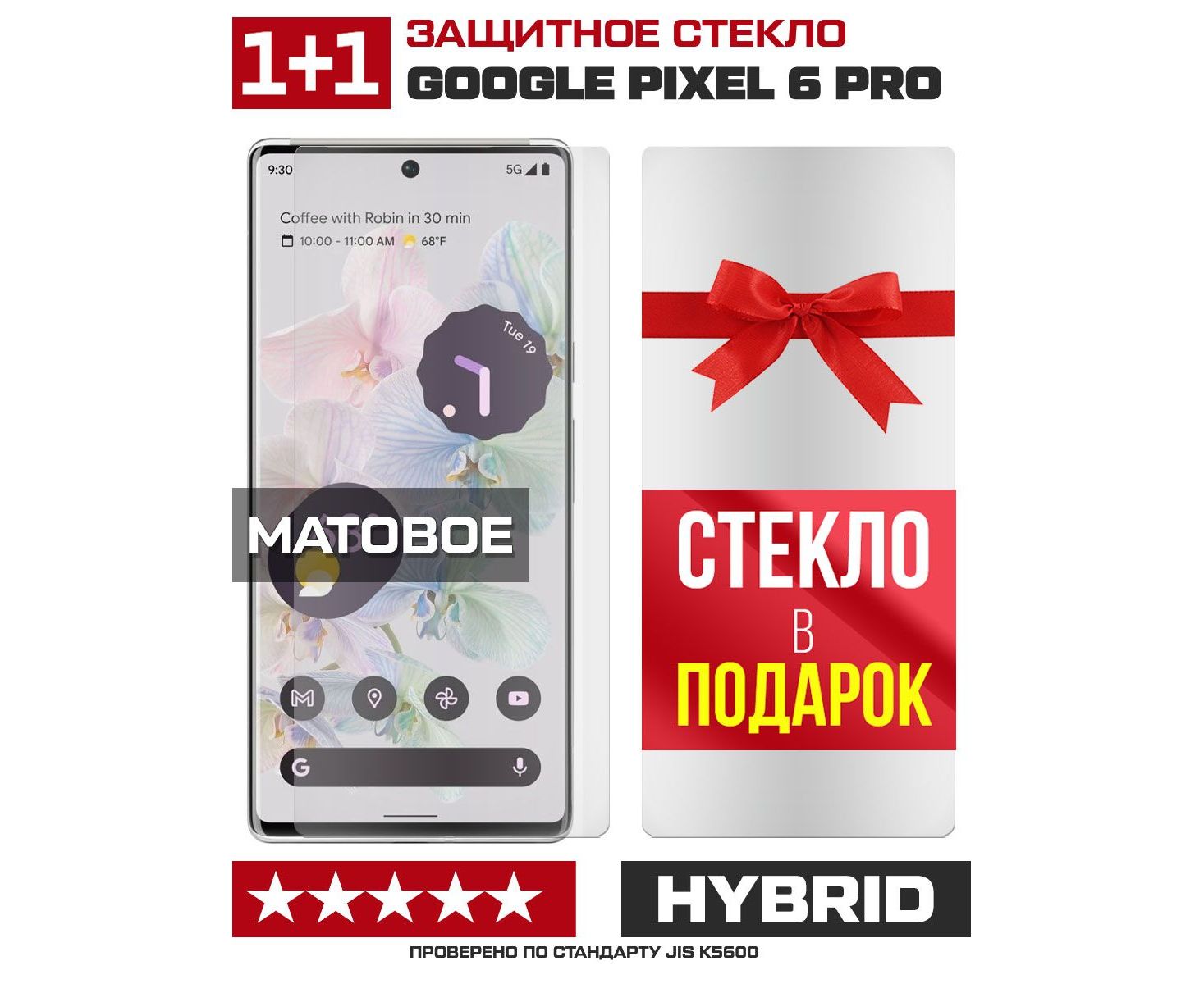 Комплект из 2-x защитных гибридных стекол МАТОВЫХ Krutoff для Google Pixel 6 Pro
