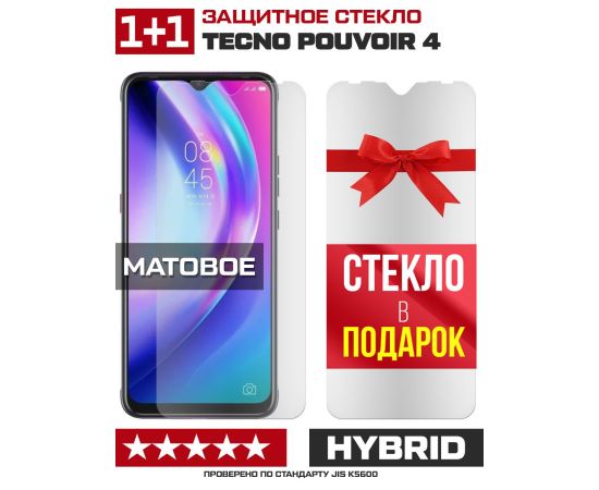 Комплект из 2-x защитных гибридных стекол МАТОВЫХ Krutoff для Tecno Pouvoir 4